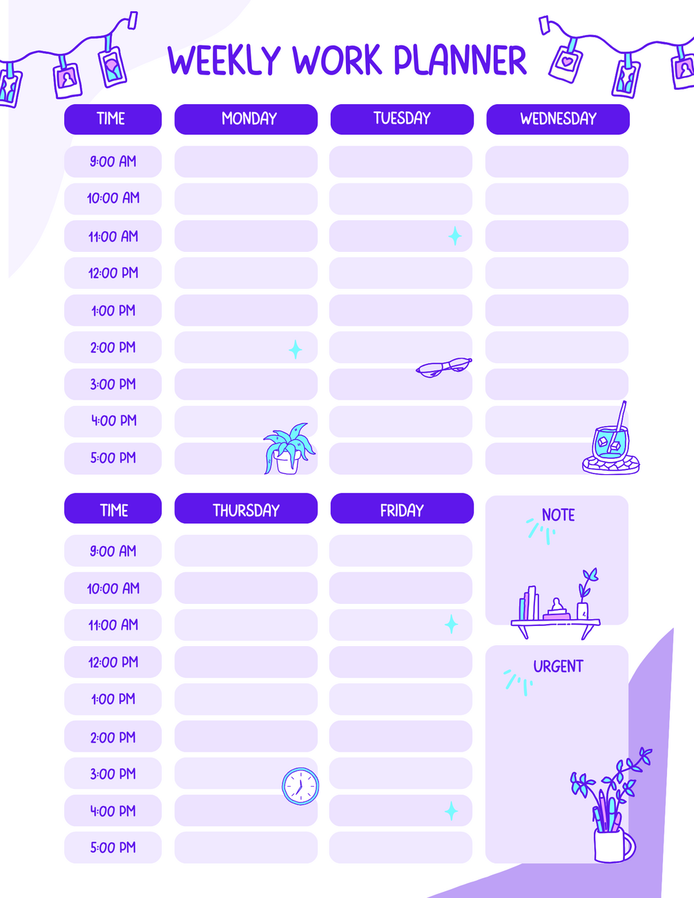 Stay organized and achieve your goals with this elegant purple planner. Featuring daily, weekly, and monthly templates, this Canva PDF helps you prioritize tasks, track progress, and increase your productivity.