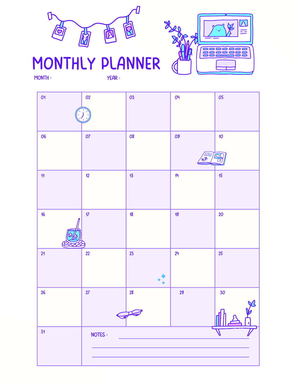 - Number of Planners: 3 (Daily, Weekly & Monthly)